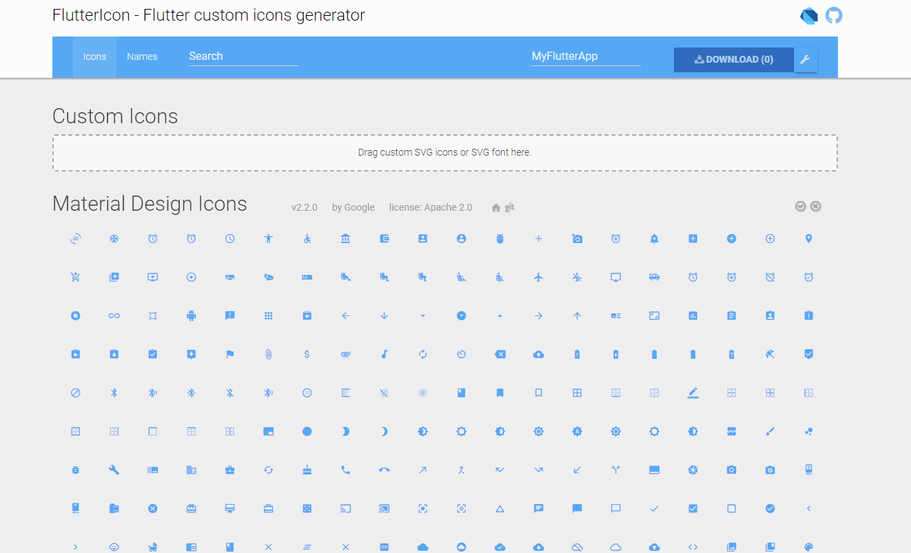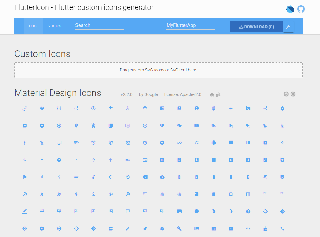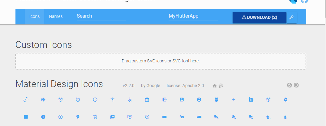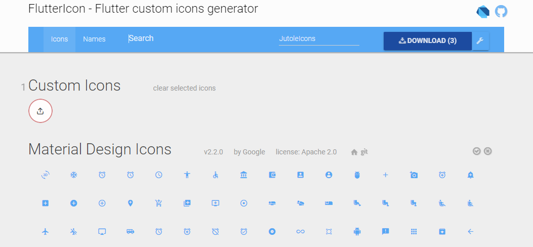 1. Flutter custom icons generator 접속