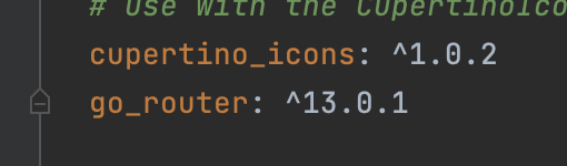 pubspec.yaml 파일에 go_router 패키지를 등록시켜 줍니다.