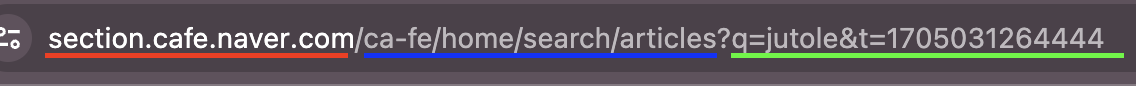 query String은 위에 사진에서? 뒤에 있는 연두색 영역입니다. key-value로 형식으로 이루어져 있고 & 로 구분합니다. path는 정확하게 해당 path로 이동해야 되지만 query String은 path로 이동한 페이지에서 query가 있으면 참조하는 느낌이라 없으면 없는 대로 있으면 있는 대로 처리할 수 있습니다. 약간 필터느낌이라고 생각할 수 있습니다.