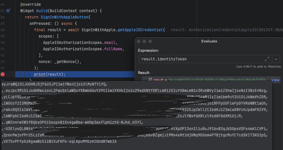 AppleLogin을 하고 받은 응답값에는 identityToken이 있습니다. 해당 토큰은 Apple에서 발급한 JWT 형식의 토큰이기 때문에 디코딩을 하면 해당 유저의 신원을 확인할 수 있습니다.