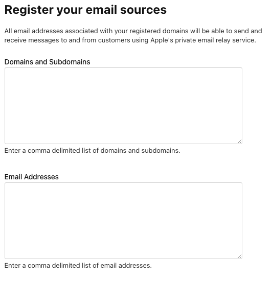 이런 상황에서 해결 방법은 위에 사이트를 들어가서 *Sign in With Apple for Email Communication* -> *Configure* -> *Email Sources* 추가 버튼을 눌러줍니다.