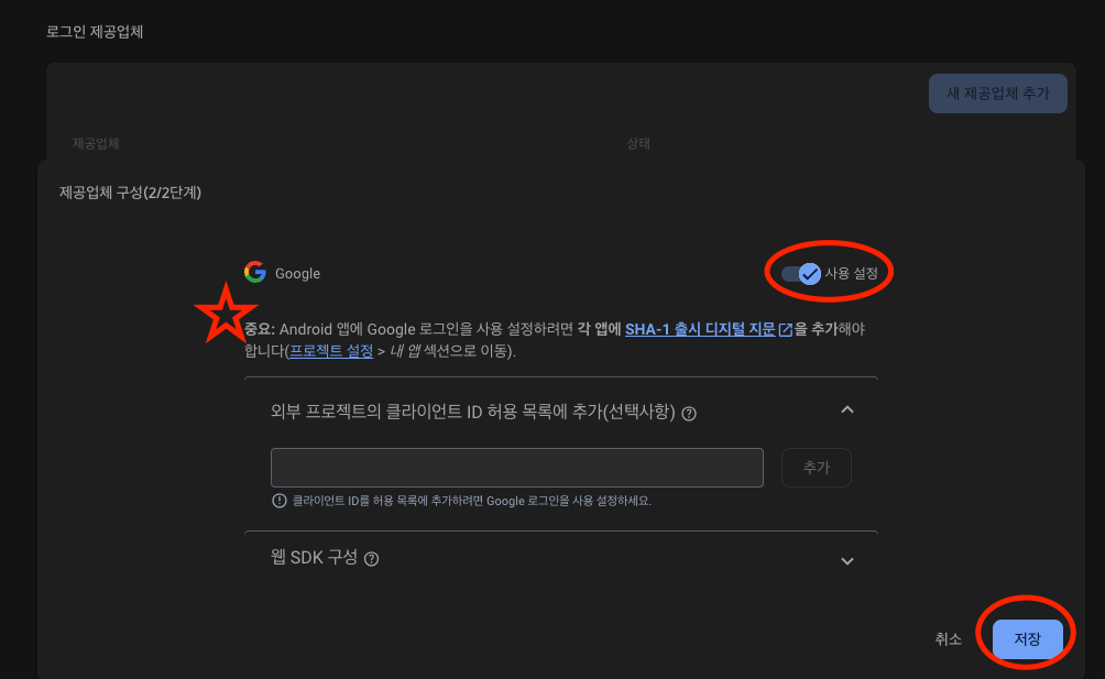 1. Firebase 로그인 제공업체 추가