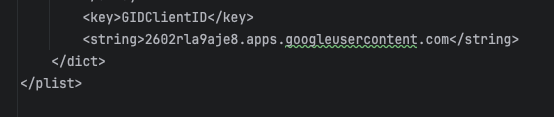 해당 파일을 열어서 CLIENT_ID를 복사하고 프로젝트 root폴더 -> ios -> Runner -> Info.plist에 아래처럼 추가해 줍니다.
