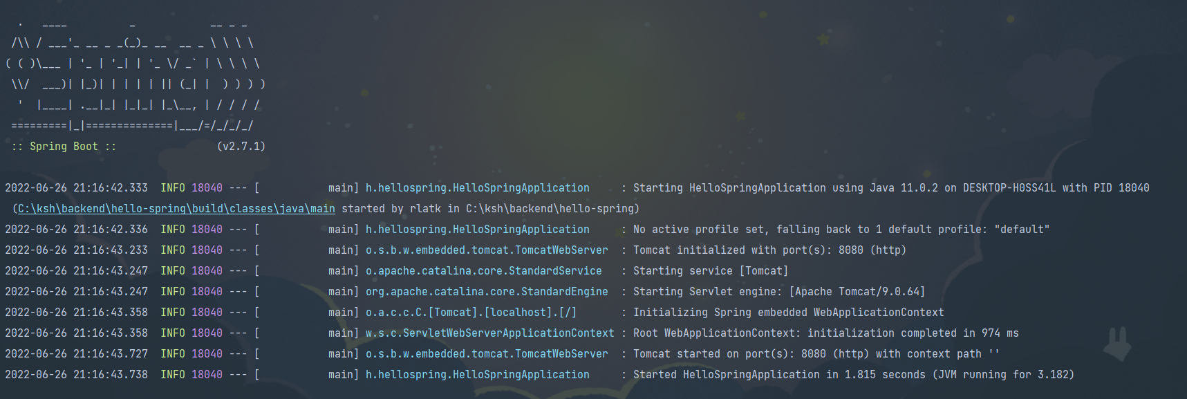실행화면에서 이러한 부분이 있다. Tomcat started on port(s): 8080 (http) with context path ''