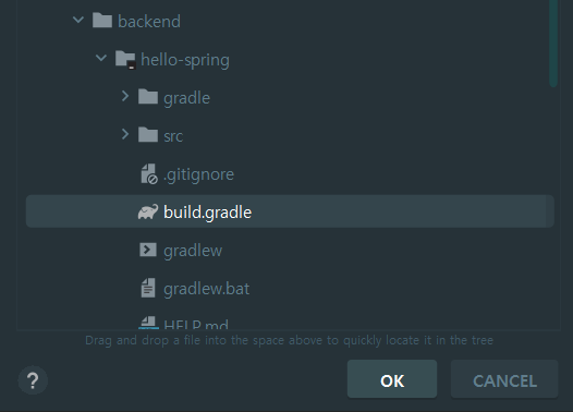 압축을 푼뒤 IntelliJ 에서 해당 압축 푼 폴더의 build.gradle을 오픈하면 된다.