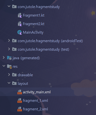Fragment1 클래스는 우리가 아까 만든 *fragment_1.xml 그겁니다.