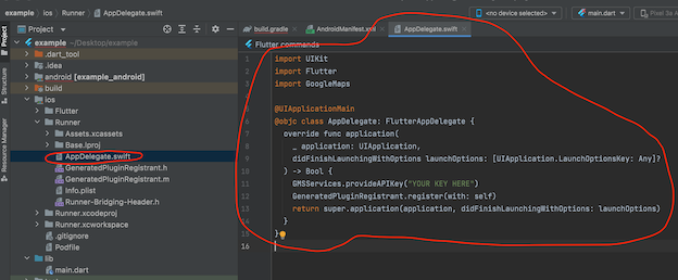 ios > Runner > AppDelegate.swift > 파일을 열고 전부 지운다음 아래 코드 복사 붙여넣기