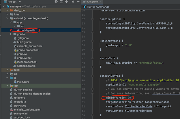 android > app > build.gradle > minSdkVersion 을 20으로 수정 !
