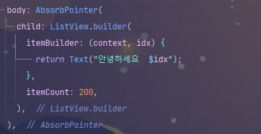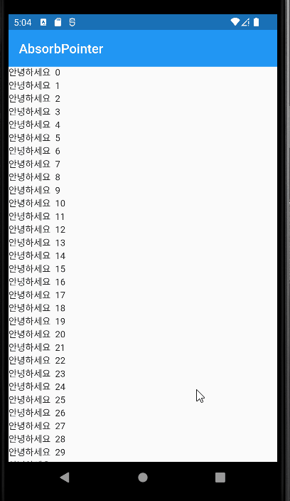 이렇게 리스트뷰에 AbsorbPointer를 감싸게 된다면?