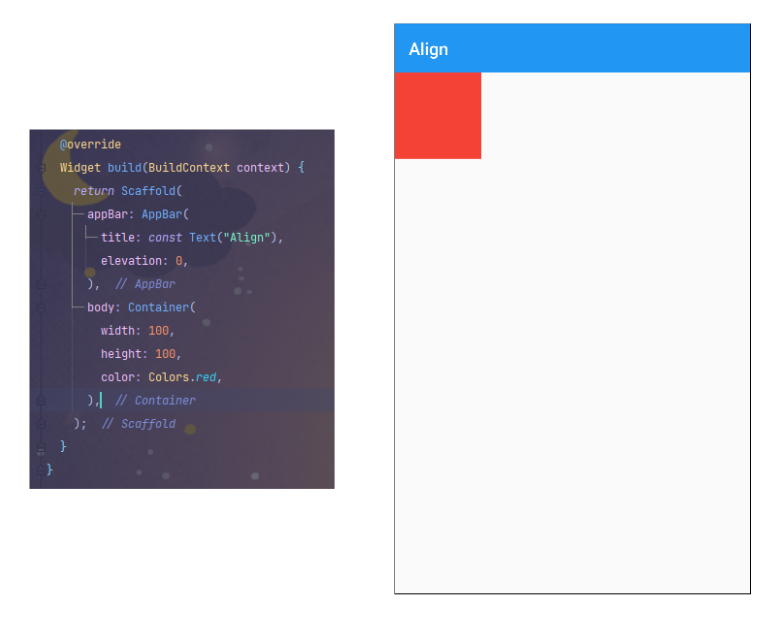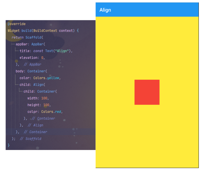 이를 확인하기 위해 align을 Container로 감싸 색상을 주어 확인해 보겠습니다.