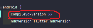 그리고 compileSdkVersion 을 33이상 부터 지원히기 때문에 이부분도 수정해줍니다.