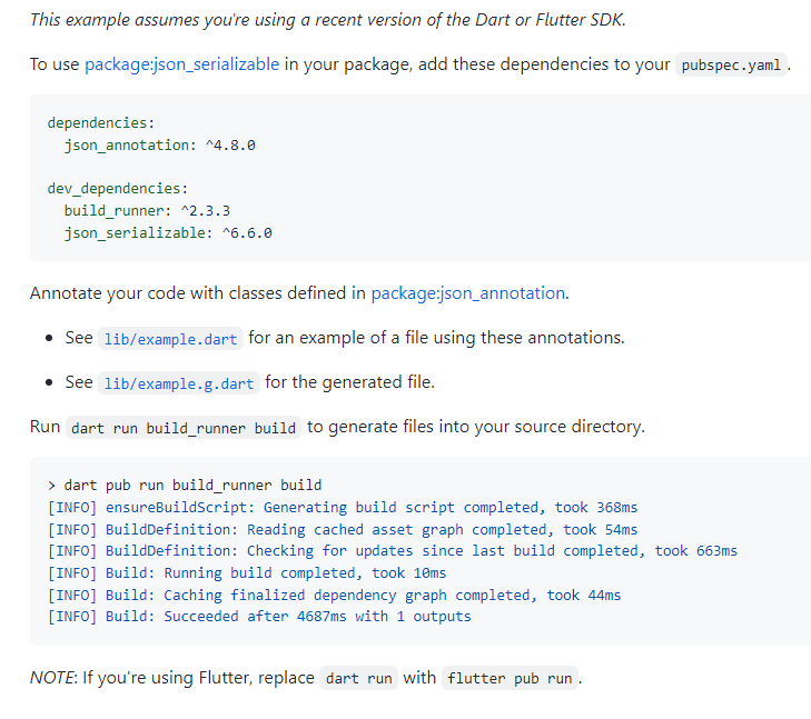 이렇게 하면 part 와 @JsonSerializable() annotation 이 붙은 파일을 자동으로 json 직렬화 시킨 파일을 생성합니다.