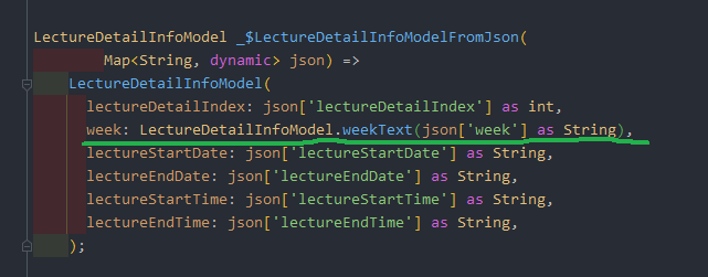 "이번주는 ${json["week"]}" 이런식으로 바꿔주고싶으면 .g.dart 파일은 건들면 안되고