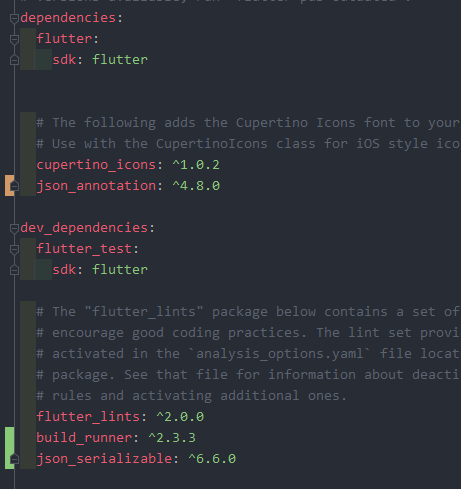 pubspec.yaml에 추가해야할 패키지를 확인할 수 있습니다.