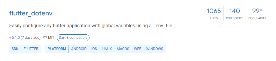 이번에 사용해 볼 패키지는 flutter_dotenv라는 패키지입니다.